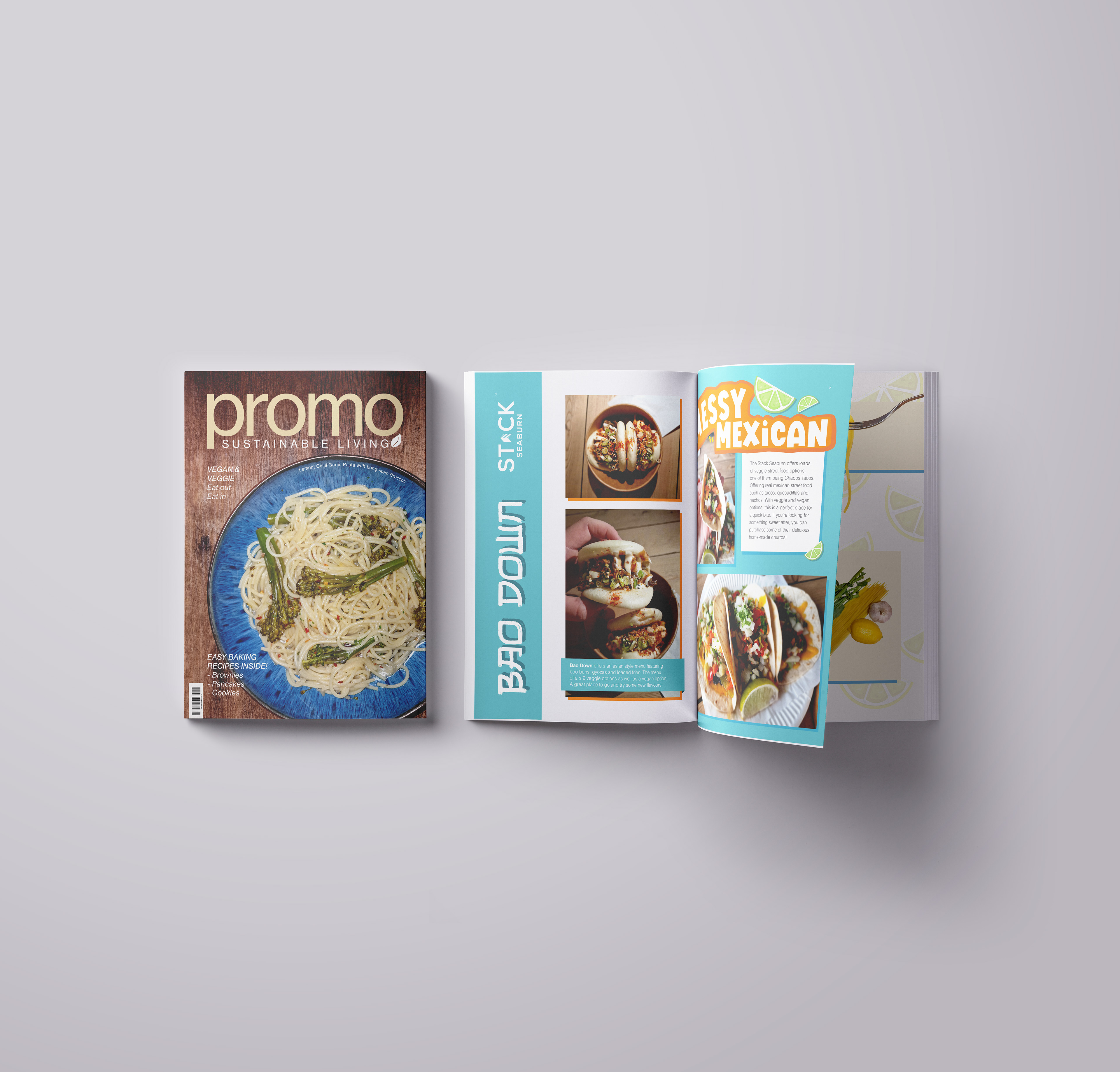 A concept magazine titled 'Promo', promoting vegan and vegetarian lifestyle.